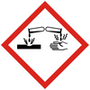 Gefahr | H290 Kann gegenüber Metallen korrosiv sein | H314 Verursacht schwere Verätzungen der Haut und schwere Augenschäden.[Anm. 1] | H411 Giftig für Wasserorganismen, mit langfristiger Wirkung | P260 Staub / Rauch / Gas / Nebel / Dampf / Aerosol nicht einatmen | P273 Freisetzung in die Umwelt vermeiden | P280 Schutzhandschuhe / Schutzkleidung / Augenschutz / Gesichtsschutz tragen | P301+P330+P331 Bei Verschlucken: Mund ausspülen. Kein Erbrechen herbeiführen. (Mit Inkrafttreten der 4. ATP am 1. Dezember 2014 aufgehoben, mit Inkrafttreten der 8. ATP am 1. Februar 2018 wieder aufgenommen) | P303+P361+P353 Bei Berührung mit der Haut [oder dem Haar]: Alle kontaminierten Kleidungsstücke sofort ausziehen. Haut mit Wasser abwaschen [oder duschen]. (Bis zum Inkrafttreten der 4. ATP am 1. Dezember 2014: Bei Kontakt mit der Haut [oder dem Haar]: Alle beschmutzten, getränkten Kleidungsstücke sofort ausziehen. Haut mit Wasser abwaschen/duschen. Mit Inkrafttreten der 4. ATP am 1. Dezember 2014 aufgehoben, mit Inkrafttreten der 8. ATP am 1. Februar 2018 wieder aufgenommen) | P305+P351+P338 Bei Kontakt mit den Augen: Einige Minuten lang behutsam mit Wasser spülen. Eventuell vorhandene Kontaktlinsen nach Möglichkeit entfernen. Weiter spülen. (Bis zum Inkrafttreten der 8. ATP am 1. Februar 2018: Bei Kontakt mit den Augen: Einige Minuten lang behutsam mit Wasser spülen. Vorhandene Kontaktlinsen nach Möglichkeit entfernen. Weiter spülen.) | P310 Sofort Giftinformationszentrum, Arzt oder … anrufen