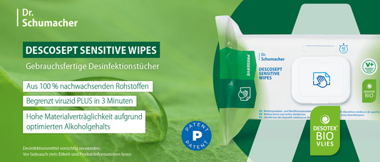 - Schutz durch Handschuhe: Tragen Sie, wenn möglich, Einmalhandschuhe, um die Haut vor übermäßiger Belastung durch Desinfektionsmittel und Wasser zu schützen.