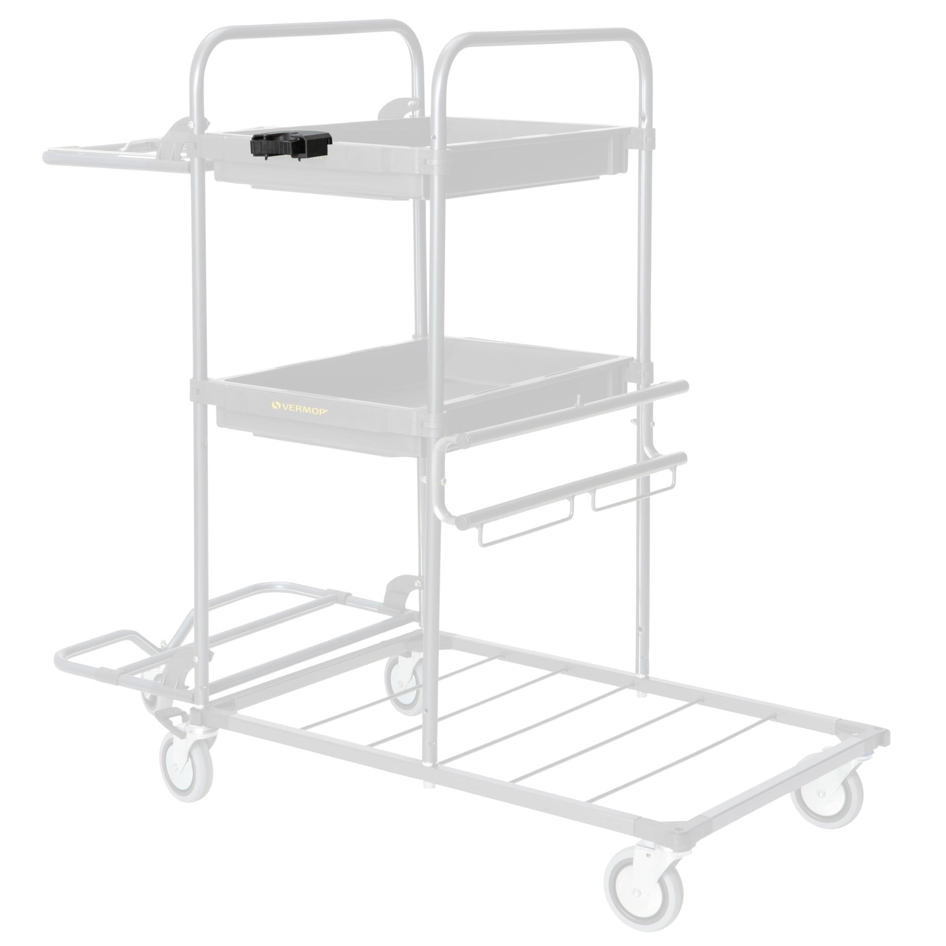 Die VERMOP Stielhalterung ermöglicht eine sichere und flexible Befestigung von Stielen mit einem Durchmesser von 22 bis 30 mm an Reinigungs- oder Arbeitswagen.