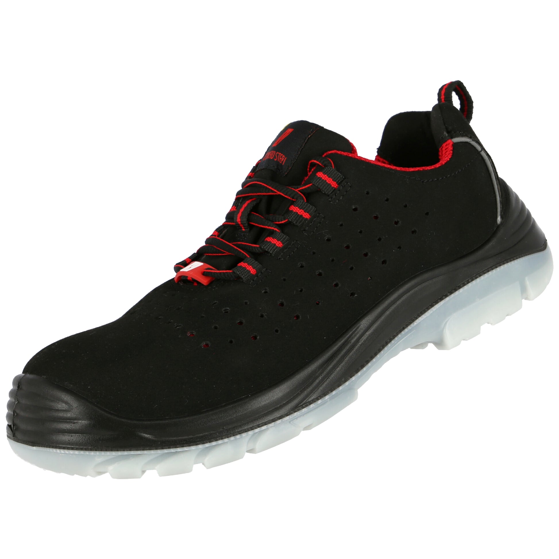 NITRAS MICRO STEP, bezpečnostné poltopánky, S1 P, odolné mikrovlákno, čierna (kód farby: 1000), odolná PU / TPU podošva, čierna / priehľadná, tužinka zo sklenených vlákien, textilná medzipodošva odolná proti prepichnutiu, bez kovov, kvalitná stielka COMFORT STEP, ergonomicky tvarovaná, atraktívny dizajn, najlepšia možná protišmykovosť (SRC), šírka na päte1 a reflexný pásik1 spevnenie päty a päty z robustného mikrovlákna, testované podľa DGUV pravidlo 112-191, typ 1, typ 2, ESD schopné, OOP kategórie rizika II