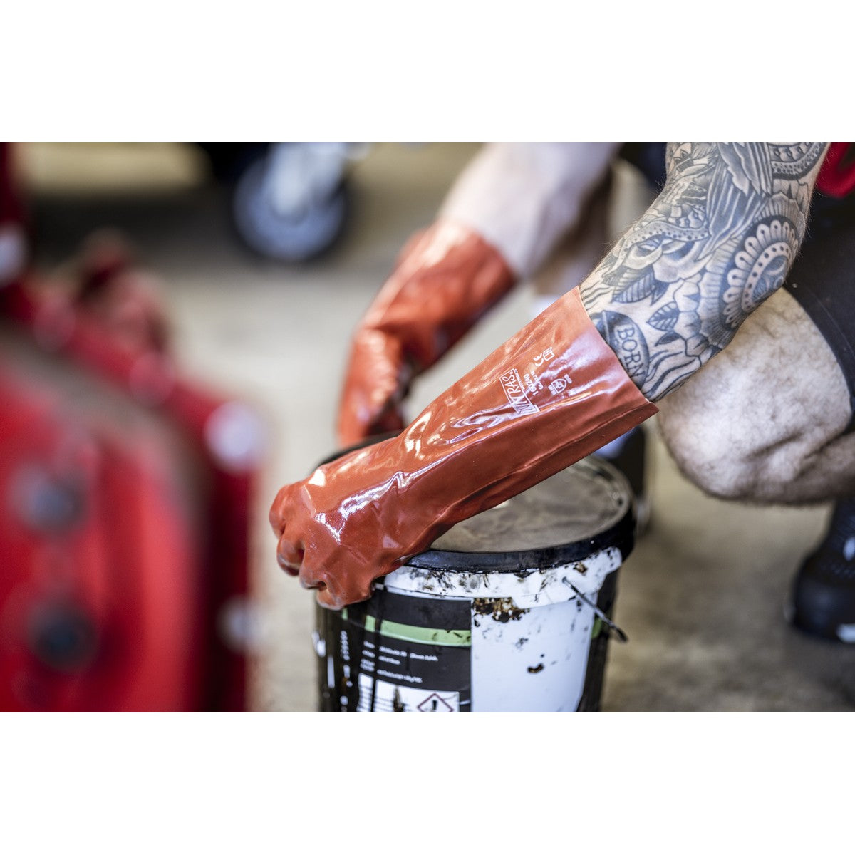 Die NITRAS PVC-Handschuhe sind speziell entwickelt, um in anspruchsvollen Arbeitsumgebungen optimalen Schutz zu bieten. Diese Handschuhe bestehen aus einem natürlichen Baumwoll-Trikot und sind vollständig mit rotem PVC (Farbcode: 6000) beschichtet. Mit einer Länge von 40 cm bieten sie umfassenden Schutz und Komfort. Ihre hohe mechanische Beständigkeit und Abriebfestigkeit machen sie ideal für Arbeiten, die eine hohe Belastbarkeit erfordern. Zudem sind sie licht- und alterungsbeständig, was ihre Langlebigkeit weiter erhöht. Sie gehören zur PSA-Risikokategorie II, was zusätzliche Sicherheit garantiert.