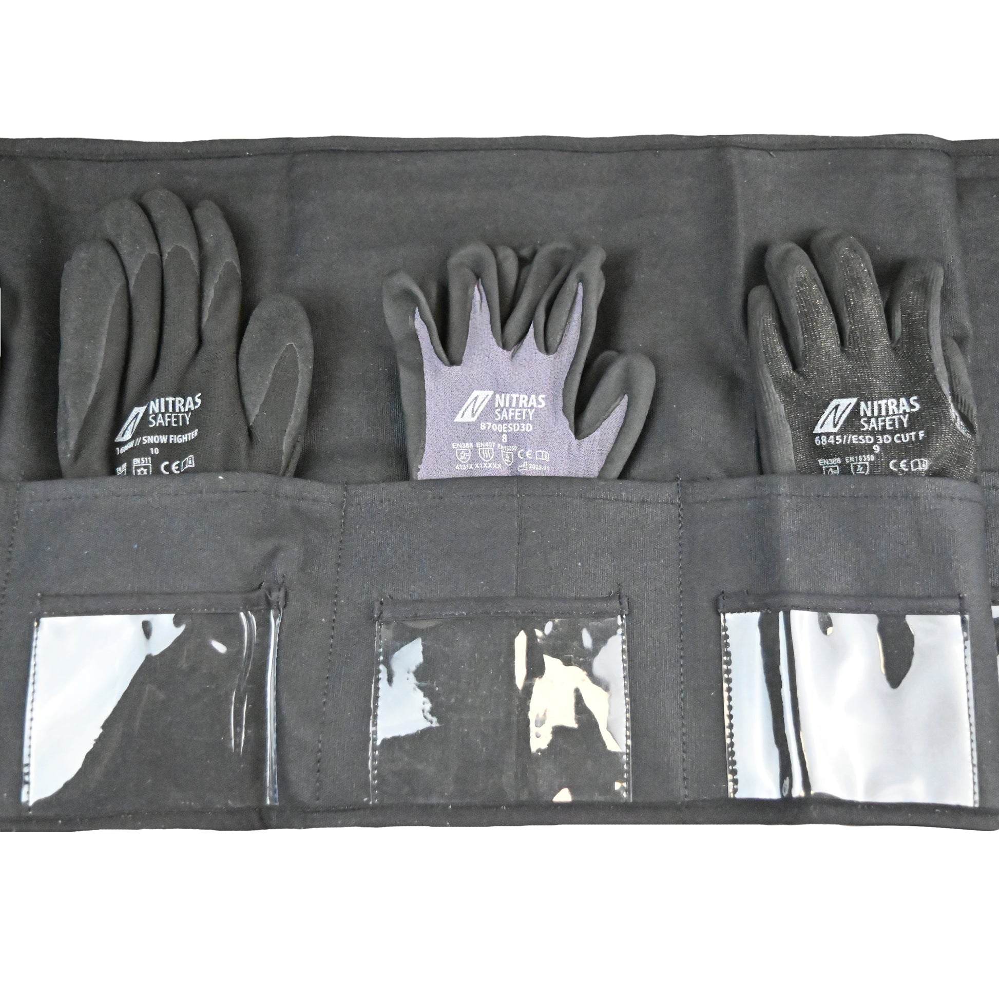 Vzorkovnica NITRAS v elegantnej čiernej farbe (kód farby: 1000) je vyrobená z kvalitnej bavlny a zaujme svojou robustnou kvalitou s hmotnosťou 410 g/m². S veľkorysými rozmermi 36 x 207,5 cm v otvorenom stave ponúka dostatok priestoru pre vaše náradie a dokumenty. Rolka má 10 priehradiek na rukavice, každá s rozmermi 16 x 17 cm, ako aj 15 malých priehradiek, každá s rozmermi 11 x 11 cm. Nechýba ani veľké vrecko na dokumenty s rozmermi 24 x 34 cm, ktoré je ideálne na väčšie dokumenty.