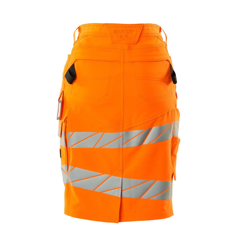 Der DIAMOND Rock für Damen bietet eine perfekte Passform mit fluoreszierendem Design und Reflexen, um maximale Sichtbarkeit zu gewährleisten. Er besteht aus einem leichten, strapazierfähigen Stretchgewebe mit wasserabweisendem Finish. Ausgestattet mit einem verdeckten Knopf- und Reißverschluss sowie Gürtelschlaufen, bietet er hohen Tragekomfort. Praktische Taschenlösungen, wie verstärkte Gesäßtaschen mit Patte, Zollstocktasche mit Kevlar®-Verstärkungen und eine Schenkeltasche mit gefütterter Handy-Tasche und Magnetverschluss, machen diesen Rock zu einem idealen Begleiter im Arbeitsalltag. Der abnehmbare ID-Kartenhalter rundet das durchdachte Design ab. Zertifiziert nach OEKO-TEX® STANDARD 100 und EN ISO 20471 - Klasse 1, gehört er zur Hi-Vis Gruppe X.
